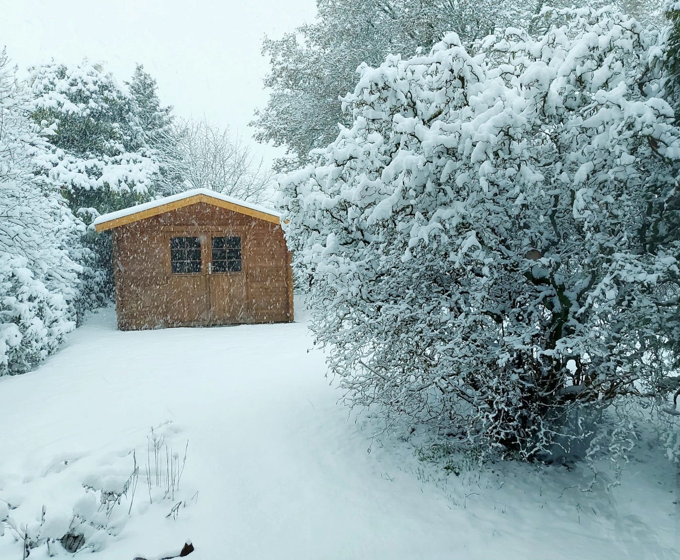 My husband and I enjoyed our time together when it got dark slowly and silently, the snow illuminating the garden, a quiet beauty, it felt almost like being under a spell. We never wished to be anywhere else instead. Looking out into the snow-covered garden while it was getting dark was simply the best.
