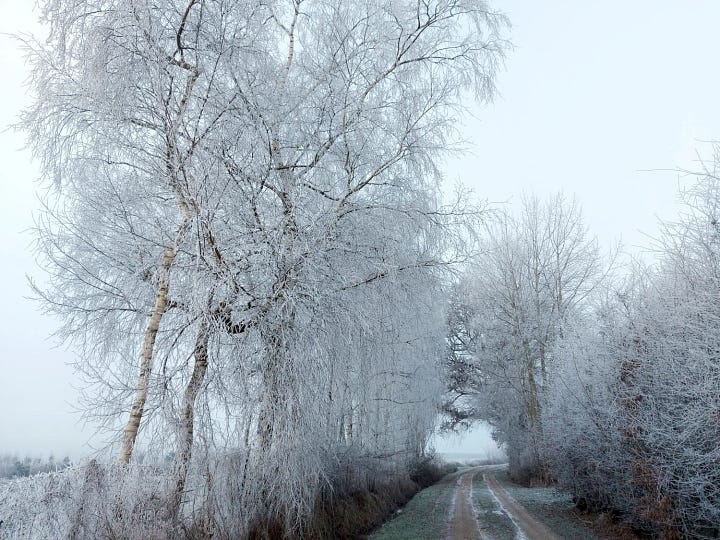 Noticing the weather and the changing seasons, really noticing. And welcoming it by being outside in all kinds of weather, taking it all in: snow, wind, rain, hoarfrost. I find, the weather is a good starting point for reconnecting with nature. Not judging it as good or bad, as desirable or annoying, but really noticing it, and accepting it as it presents itself.
